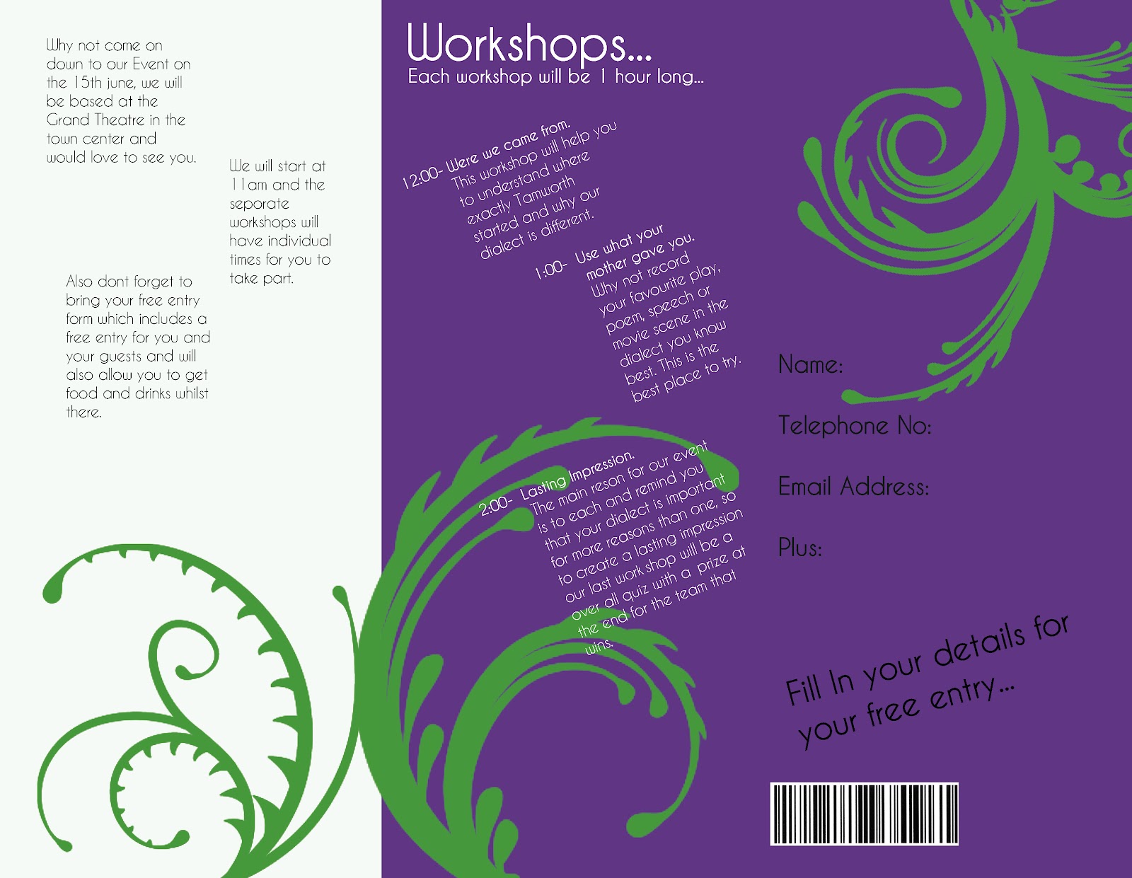 These are the idea for my third element. I will be creating a leaflet for each of the different cities/towns my campaign will be visiting. The idea of using a different pattern for each town was because each has their own dialect. I think the colours work well together and the different colours inside make them more interesting.